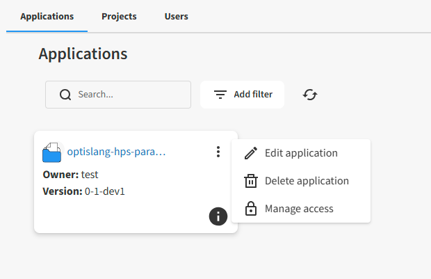Owner: The user can Edit the application, delete it, and provide access to other users.
